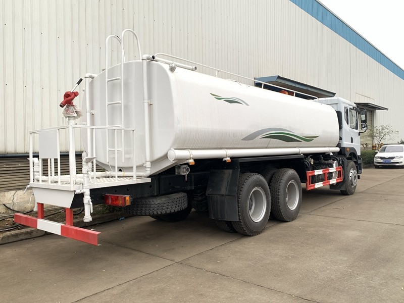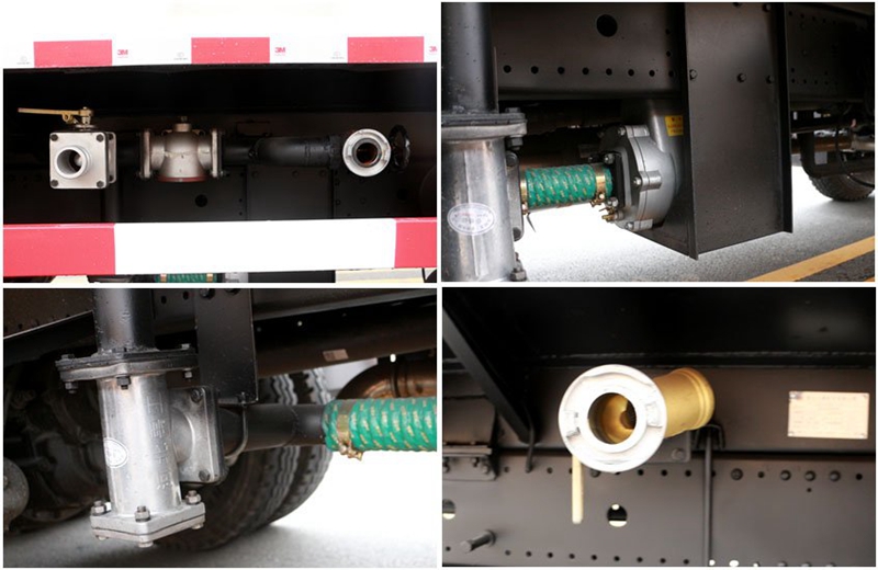 東風20噸灑水車使用了鋁合金球閥,隨車配備消防栓接口,方便從消防栓里取水;管道管路設計合理,使用國內最好的不銹鋼淄博水泵,泵進泵出,動力足;水泵泵進的水經過濾網過濾,有效的防止水中的雜質進入管內,濾網做成可拆卸式的,方便清潔及更換;罐體后部加裝鍍銅自流口,防腐防銹,便于管內排水,以及消防栓加水使用。