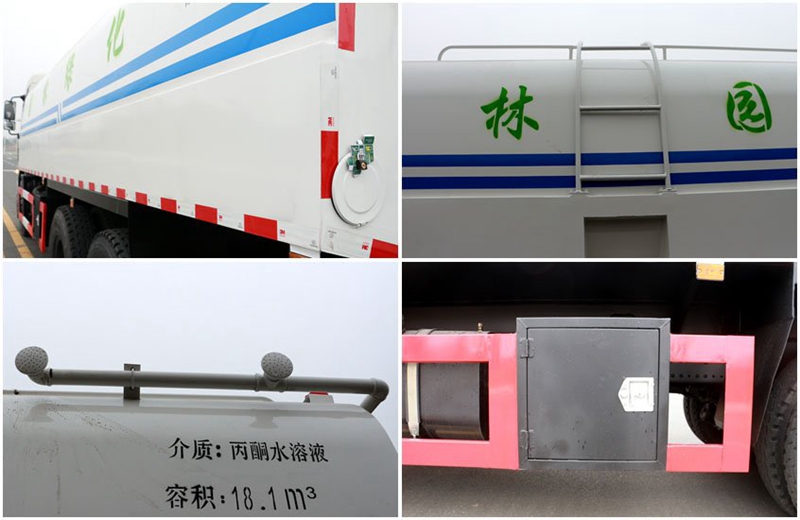 東風20噸灑水車罐體采用4mm碳鋼一次性壓板而成,減少二次焊接,罐體兩側精心設計抽水管存放箱,方便作業時抽水使用;罐體爬梯設計于罐體右側,方便爬向罐體頂部;罐體兩側安裝高位花灑,可同時作業,用于馬路綠化帶植物沖洗及降塵;隨車配備工具箱,便于存放隨車工具。