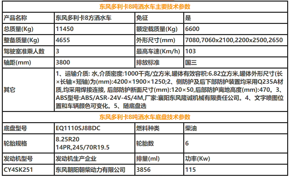 國六東風(fēng)大多利卡 9.2噸灑水車參數(shù)配置項目參數(shù)軸距(mm)3800發(fā)…