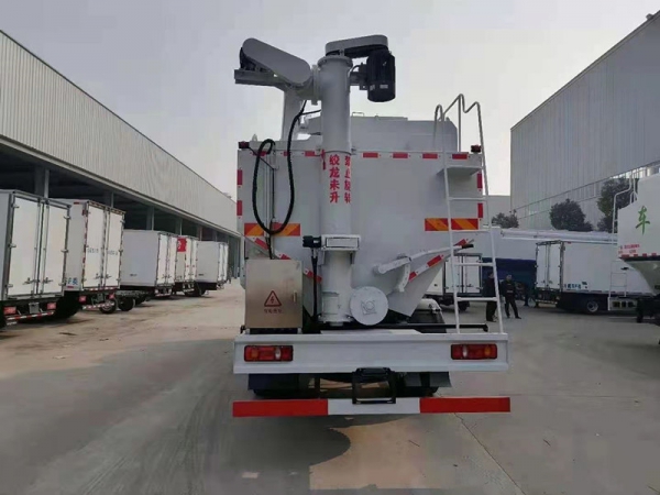 2.罐體實際容積20-24立方,采用橫向一次成型,采用3.0MM優質高強度錳鋼板焊接而成,焊點均勻,打磨平整;底部采用國標U形鋼一體式結構,罐體側面使用加強筋斜撐加固;分3個獨立裝卸料倉,可以同時裝卸多種不同的飼料;