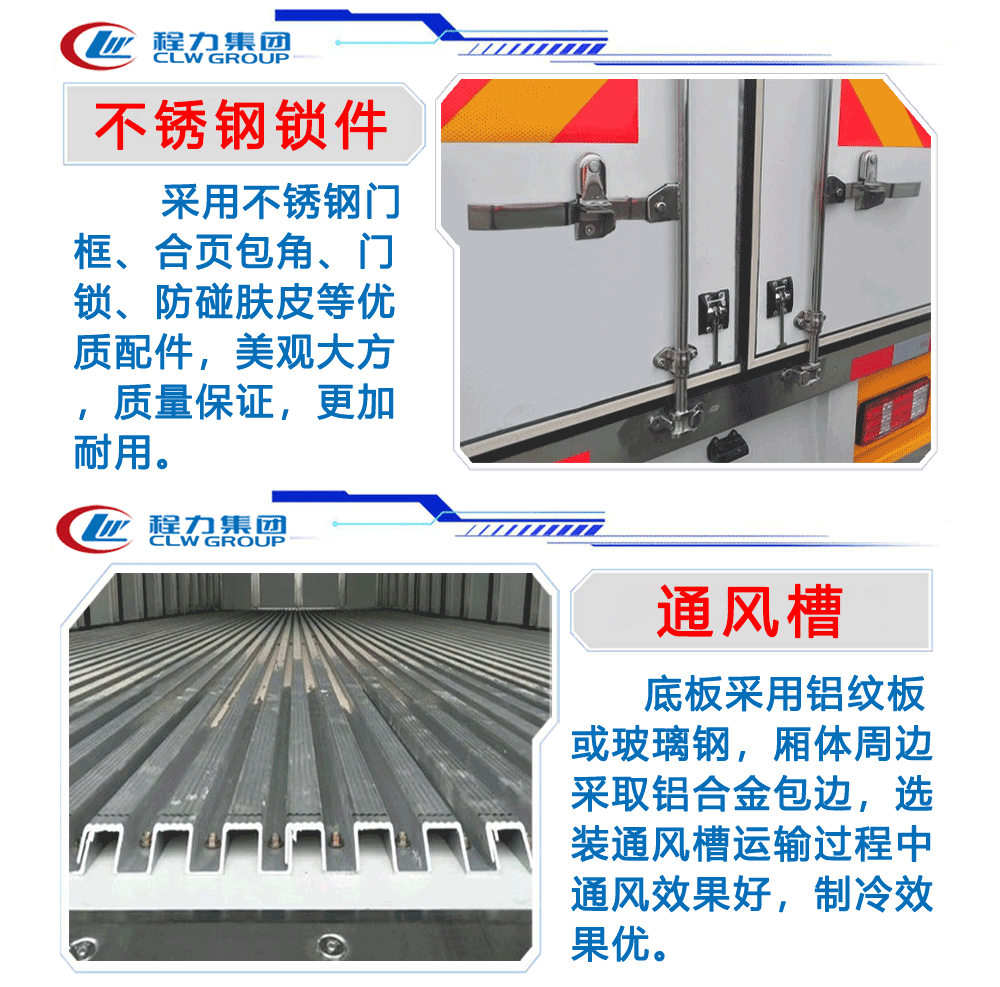 國六東風多利卡冷藏車整車尺寸:5995*2040*3000箱體尺寸:4100*1840*1820功率/馬力:95KW 130馬力3.7L排量東風朝柴發動機(CY4BK461)7.00R16輪胎軸距:3308加裝零下15度制冷機空調、動轉、斷氣剎、ABS、中控鎖+電動車窗+遙控、剎車自調臂、可調大燈、日間行車燈,多功能方向盤上裝配置:箱體為內外玻璃鋼板,中間保溫材料為8cm聚氨酯保溫板,鋁花紋底板,箱體鋁合金型材包邊,包角,配雙開后門,單開側門,不銹鋼門框、鎖件、鉸鏈,其余