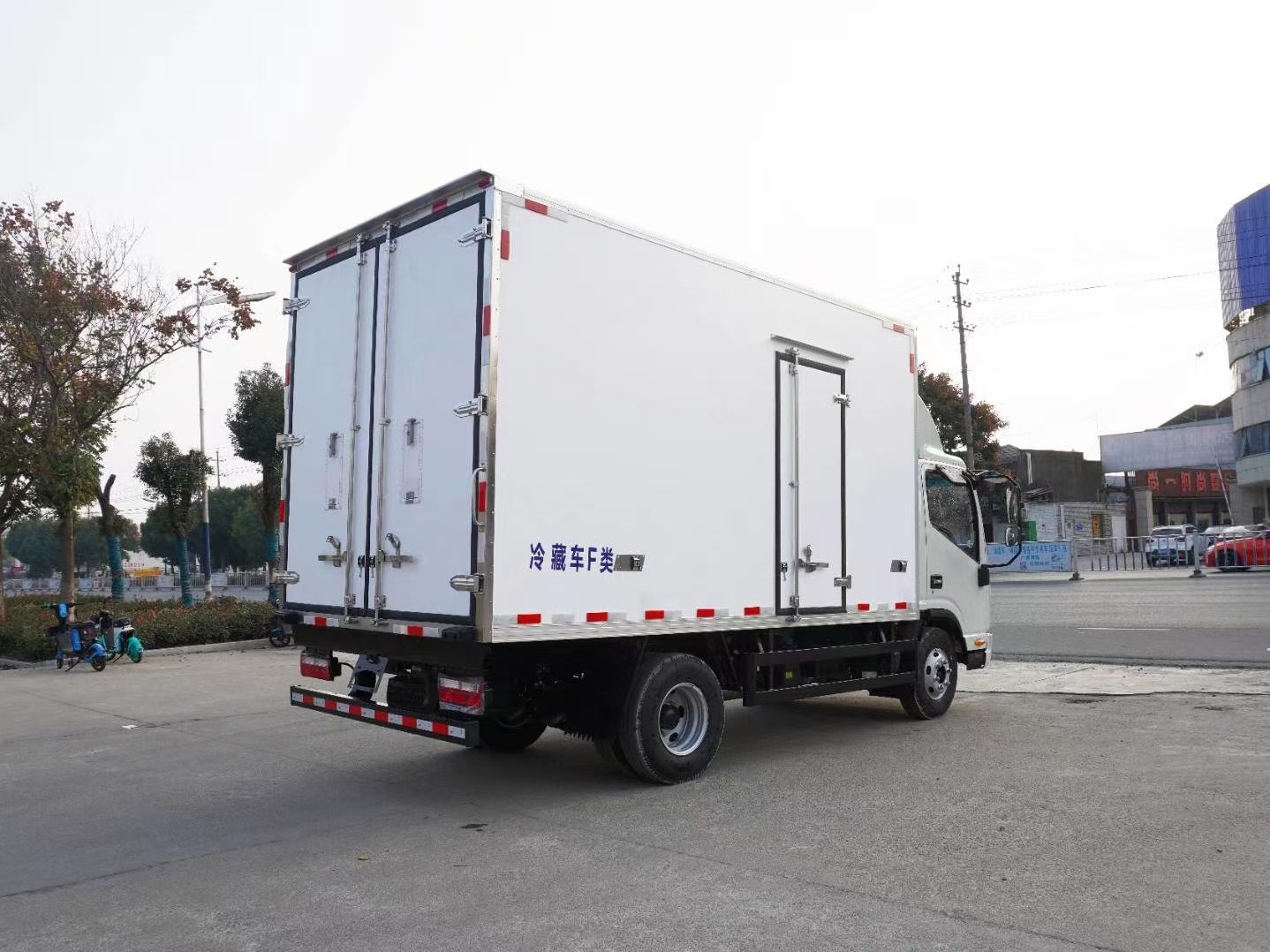 廂體工藝: 廂體材質采用內外玻璃鋼,中間8CM聚氨酯保溫板,后雙開門,廂體右側靠前選裝開側門,底部采用花紋防滑鋁板,前部排水孔,門邊條采用迷宮式橡膠密封條,鋁合金型材包邊,不銹鋼包角,不銹鋼門鎖,不銹鋼門框及合頁,廂體內節能LED照明燈。